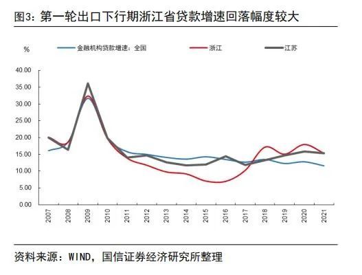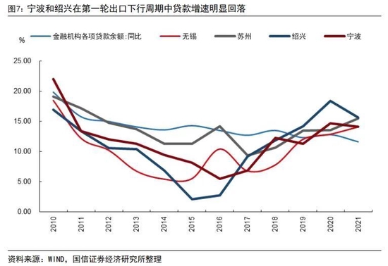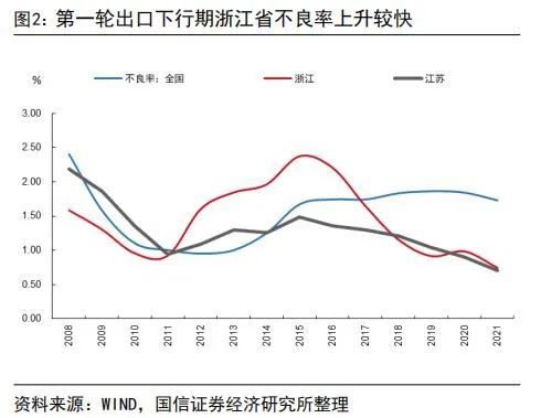 历史上两轮出口下滑周期中江浙银行业经营情况