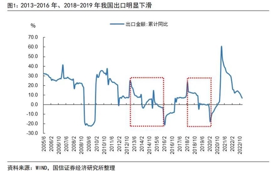 我国历史上最近的两轮出口下行周期分别是2013-2016年和2018-2019年(2020年全球受疫情扰动,分析时不考虑):