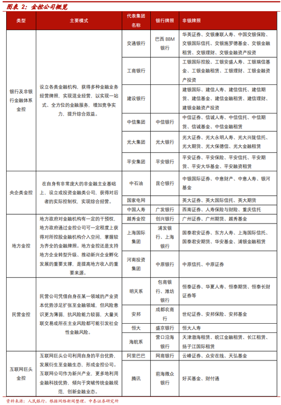 一是成立国家金融监督管理总局,并划入原人行对金融控股公司、消保的监管、以及证监会投资者保护的职责,主体上实了金监总局对非证券业各类金融机构的全覆盖。根据国务院关于提请审议国务院机构改革方案的议案,在中国银行保险监督管理委员会基础上组建国家金融监督管理总局,作为国务院直属机构,统一负责除证券业之外的金融业监管,强化机构监管、行为监管、功能监管、穿透式监管、持续监管,统筹负责金融消费者权益保护,加强风险管理和防范处置,依法查处违法违规行为。新划入职责:将中国人民银行对金融控股公司等金融集团的日常监管职责、有关金融消费者保护职责,中国证券监督管理委员会的投资者保护职责划入国家金融监督管理总局。金控公司改革前后:目前金融控股公司由人民银行批准设立,从成立机构来看,金融控股公司分为两类,一类是银行保险机构成立的金控公司,受银保监会监管;一类是非金融法人成立的金控公司,而后者受人民银行监管。因此存在监管主体不一致的情况,本次改革中,由国家金融监督管理总局来实现对金控公司的统一监管。