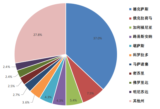 以德克萨斯州为例,该州农业和石油行业衰退、房地产泡沫破裂,加之新设银行数量较多,且仍实行单一银行制度,使得银行贷款区域集中度、行业集中度较高,行业和经济衰退导致大量银行倒闭。1980-1994年间,该州共有599家银行倒闭,占当地银行总数的29.41%;倒闭银行资产总计601.9亿美元,占当地银行总资产的43.84%。危机后该州前十大银行控股公司仅1家存活。相比较,只存在上述一点或两点情况的州,银行倒闭的数量则较少。