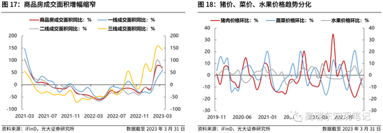 3.3 下游:商品房成交面积增幅缩窄,猪价、菜价、水果价格趋势分化