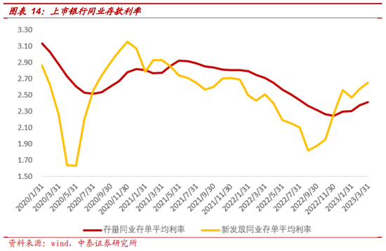 1月LPR调降,4月自律机制鼓励部分中小银行下调浮动上限,但中小银行动力不强,最终大行先做下调,中小行跟进,整体带动新发生存款利率有所下行。