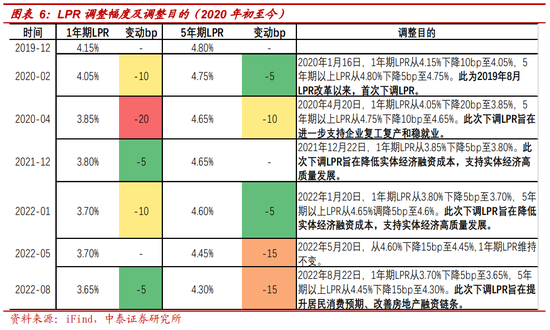 1月LPR调降: 2022年1月20日,1年期LPR从3.80%下降5bp至3.70%,5年期以上LPR从4.65%调降5bp至4.6%。4 月份存款自律机制鼓励调整浮动上限:4月15日,央行宣布于2022年4月25日全面降准0.25个百分点后,市场利率定价自律机制召开会议,鼓励部分中小银行存款利率浮动上限下调10bp。这一要求并非强制,但作出调整的银行或将对其宏观审慎评估(MPA)考核有利。结果:中小银行存款竞争激烈,调整动力不强,大行先行调降10bp。银行存款竞争激烈,尤其是小银行揽储压力较大,所以小银行调整动力不强,最后监管向大行进行窗口指导,大行先行调降 10 BP,小银行再做跟进。4月25日,多家银行下调存款利率,下调主体主要以国有行、股份行为主;下调存款品种主要以大额存单为主,定期存款等为辅;下调的期限以2年期、3年期为主;下调的幅度多在10BP左右。最终,根据2022年一季度货币政策报告表述:4 月最后一周(4 月 25 日-5 月 1 日),全国金融机构新发生存款加权平均利率为2.37%,较前一周下降10个基点。