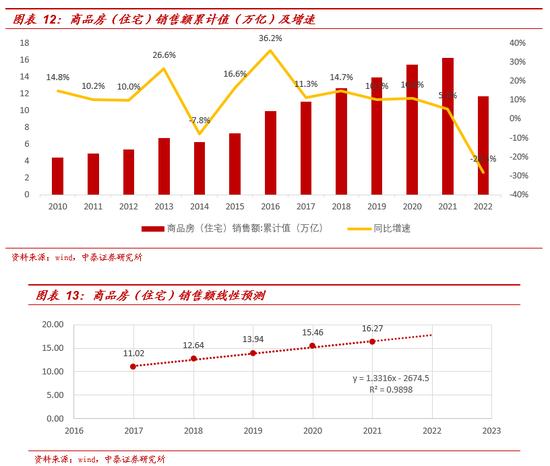 住房是居民资产配置中占比最高的资产,购房首付需要支出大量储蓄,按揭贷款的持续支出也对储蓄积累产生持续压力,2022年因居民减配房产而留存的储蓄也是超额储蓄的重要构成。在2016年底明确“房住不炒”之后,2017年住房销售额增速大幅放缓,此后维持较为稳定趋势,2022年出现断崖式下跌,基于此测算由于居民减配房产而产生的储蓄。