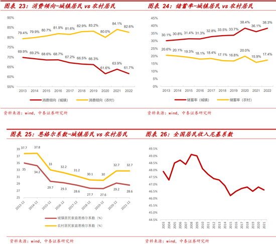 核心观点:支出端,城镇居民消费支出占收入比重低,储蓄意愿更强,而农村居民由于且刚性消费支出占比高,消费倾向较高,储蓄率偏低,结合收入端分析,更多超额储蓄或由高收入人群带来。