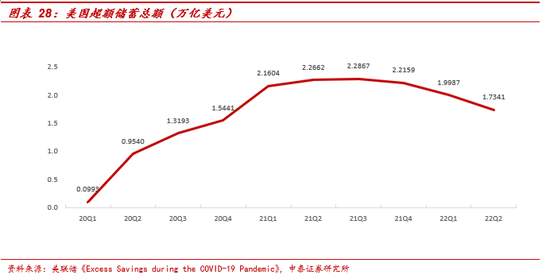 美国方面,根据美联储于 2022年 10 月的研究报告《Excess Savings during the COVID-19 Pandemic》表述,截至22Q2美国全部超额储蓄约1.73万亿美元,其中中高收入人群持有约 1.35 万亿美元,占超额储蓄总额的78%。