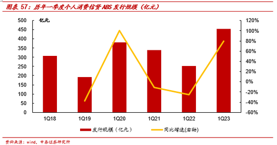 6、下阶段预计将在严控风险的情况下,继续增加对消费信贷的支持力度,推动融资成本稳中有降,做好重点领域融资保障。可以通过消费信贷ABS发行量来侧面观察政策对于消费信贷的支持力度,1Q23 个人消费信贷ABS发行169个,发行规模454亿,发行数量和规模均创6年来最高。