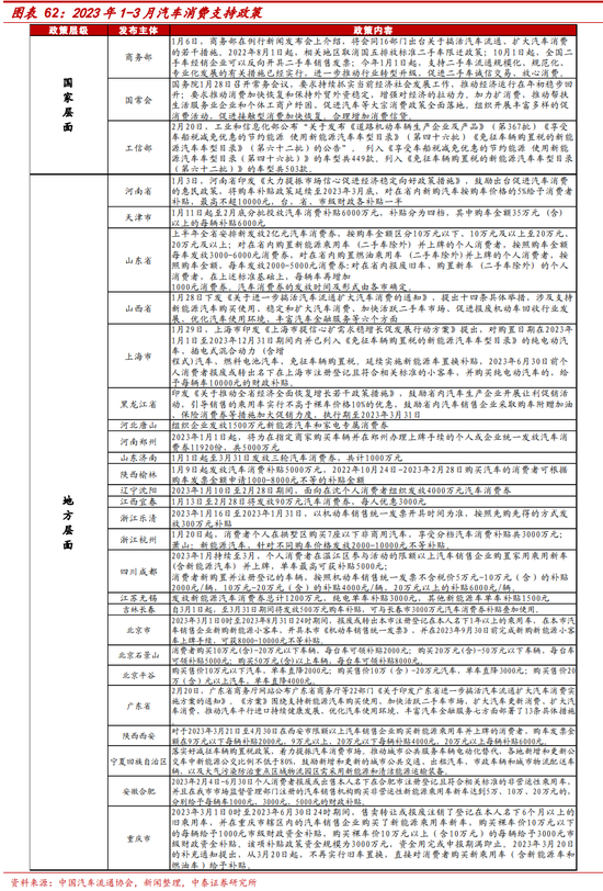 从短期看,目前正处于燃油车购置税减半和新能源补贴的政策退坡窗口期,叠加1月春节和疫情刚放开,一季度乘用车销量同比下降7.2%。在地方政府陆续进行的汽车消费刺激政策接力下,3月明显回暖,3月单月乘用车环比同比分别增22%和8.2%,新能源车销量环比同比分别增24.4%和34.8%。二季度随着各地春季车展开幕+各地方汽车消费政策持续+五一节假日出行等利好,汽车消费、特别是新能源汽车以及二手车预计回暖趋势将有所延续。