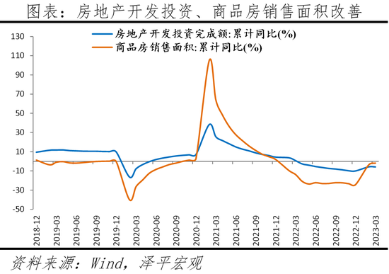 从销售看,2023年1-3月,商品房销售面积29946万平方米,同比下降1.8%,累计降幅较1-2月收窄1.8个百分点;其中住宅销售面积增长1.4%,累计同比由负转正,走出连续12个月负增长状态。商品房销售额30545亿元,增长4.1%,累计同比由负转正;其中住宅销售额增长7.1%,较1-2月涨幅继续扩大3.6个百分点。