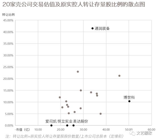 就存量股转让比例(占原实控人总持股比例)来看,平均转让比例为39.56%,中位数转让比例为35.36%。其中3家采用纯定增方案的壳公司原实控人的股份全未减持。目前能所谓“一把接”壳公司原实控人手上所有存量股的买家极为稀少,壳公司原实控人在控制权转移后往往还保留相当数量的股份,也就意味着原实控人最终退出的收益如何要取决于新实控人装入的资产质量如何。这就是为什么最近6个月买下壳公司控制权后公告资本运作计划的标的资产清一色全部都是新能源,后者是目前市场上最热门的有估值又有利润的资产了。