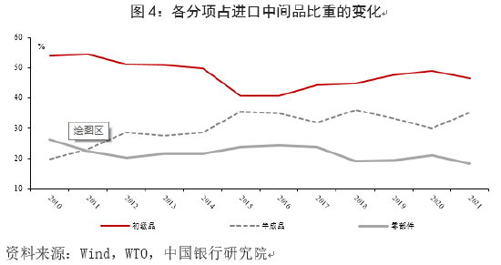 二、中间品进口占比下降,定价权和产业转移趋势值得关注