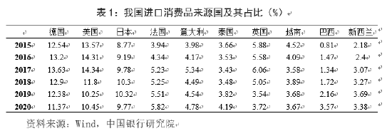 从我国消费品进口来源分布来看,美国是主要来源国(表1)。此外,从巴西进口消费品的增长态势较为明显。主要原因在于我国与巴西之间的粮食贸易发展较快,2018年,我国从巴西进口的大豆数量超过了美国。2022年受俄乌冲突影响,我国减少了从乌克兰进口的玉米,首次从巴西进口玉米,巴西逐渐成为我国粮食进口贸易的重要伙伴。