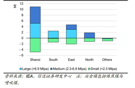 图9:2020-2021中国主要产区冶金煤产量变化(百万吨)