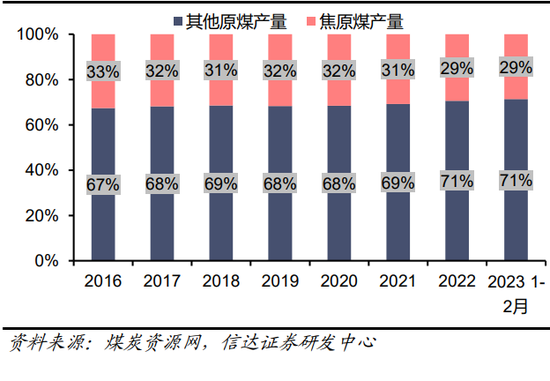 图11:2016-2023炼焦原煤产量占比(%)