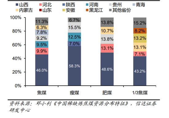 图18:我国各赋煤区稀缺炼焦煤储量占比(%)