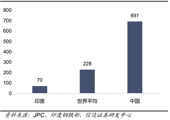 图38:印度人均钢铁消费量及对比(千克/人)