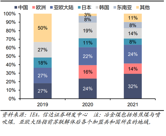 亚洲是冶金煤进口的主力。澳大利亚、美国、俄罗斯、加拿大、蒙古是冶金煤的主要出口地区,印度、中国、日本、韩国、欧洲是冶金煤的主要进口地区。