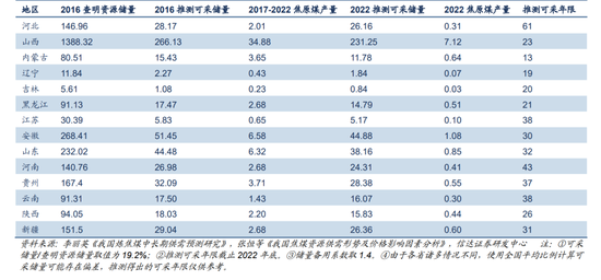 表2:我国部分省份炼焦煤资源推测可采年限(亿吨,年)