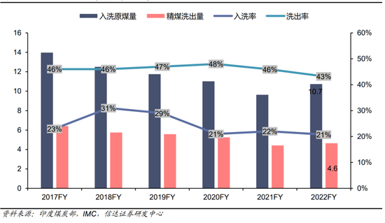 图36:2017FY-2021FY印度焦煤选洗情况(百万吨)