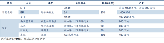 表6:蒙古炼焦煤出口中国主要煤矿及对应中国口岸