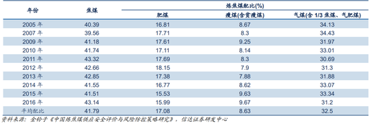 表3:2005-2016年我国主要钢铁联合企业平均炼焦煤配比情况(%)