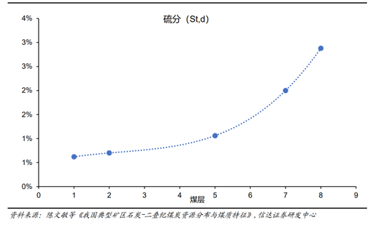焦煤主要产区随着开采深度的增长,硫分逐渐上升。根据掌上煤焦的研究,作为我国炼焦煤的主要产区,华北赋煤区主要的含煤地层自上而下分别为二叠系山西组和石炭系太原组,石炭系太原组的煤硫分普遍高于二叠系山西组煤的硫分。原煤硫分目前平均为0.8%~1.2%,随着开采深度的加深,二叠系山西组的煤所占的比例将越来越少,原煤硫分将提高到1%~1.5%,到2030年华北赋煤区的原煤硫分将达到1.3%~1.8%。此外,河北的开滦、峰峰、邯郸、邢台等矿区和蒙西的乌达、海勃湾等晚古生代石炭―二叠纪煤田的山西统和太原统煤层的硫分变化也与山西省的大同小异。
