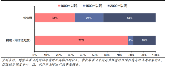 图14:褐煤与焦煤资源储量埋深占比(%)