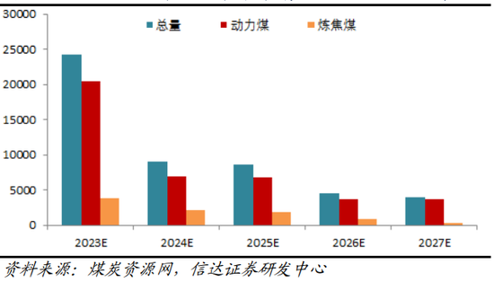 图13:2023-2027煤炭分煤种新增产能预测(万吨/年)