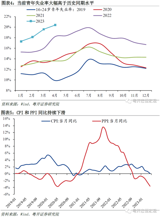 市场对于经济恢复的斜率和持续性存在分歧和疑虑。总量好转,就说结构不佳;结构变好,就说持续性存疑。因此即使一季度经济金融数据持续超预期,资本市场仍表现疲软。4月经济数据走弱,进一步冲击市场信心。4月制造业PMI降至49.2%,滑入收缩区间;16~24岁青年失业率升至20.4%,大幅高于历史同期水平;物价持续走低,2~4月CPI同比分别仅为1.0%、0.7%、0.1%,引发“经济是否陷入通缩”的讨论;1~4月民间投资累计同比仅为0.4%,大幅低于固定资产投资总额增速的4.7%;4月房地产销售、投资在2~3月的短暂反弹后再度走低。