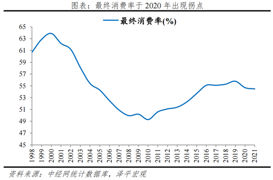 从消费端看,居民最终消费率近两年转为下降,居民消费意愿不足。居民消费与收入呈同向变动趋势,面对收入下降,消费的同比变化幅度更大且回升更慢,2020年后由于新冠疫情的影响,居民消费受到严重冲击,收入的降幅小于消费,导致居民储蓄率大幅上升。在2020年,最终消费率结束长达十年的增长态势,转而下滑,这与居民储蓄率上行趋势相反。我国当前约55%的最终消费率水平仍然低于发达国家约80%的平均水平,也低于大多同阶段的发展中国家,内需有待扩大提振。