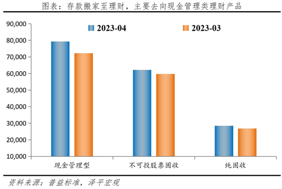 从投资端看,理财、资本市场波动、地产下行等因素影响,居民风险偏好提升,居民存款回流。