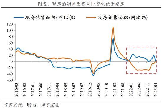 3)受地产处于爬坡恢复,居民购房持观望情绪。短期居民对房市信心不足、观望情绪较浓,叠加房地产置业长周期、老龄化少子化到来,贷款需求与地产市场息息相关。2022全年,全国商品房销售面积、销售额同比分别下滑24.3%和26.7%,导致居民中长期贷款仅多增2.75万亿元,远低于2021年的多增6.08万亿元。同时从销售面积同比变化看,现房的恢复速度优于期房销售,体现居民一定的风险厌恶情绪。3月居民中长期信贷超预期高增,但4月房地产小阳春持续不及预期,未来趋势仍需观察。