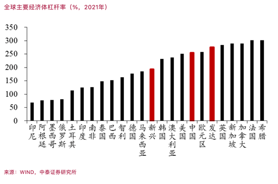 从国际比较看,我国宏观杠杆率水平确实不低。按国家金融与发展实验室的统计,2021年为263.8%,接近发达国家平均水平。