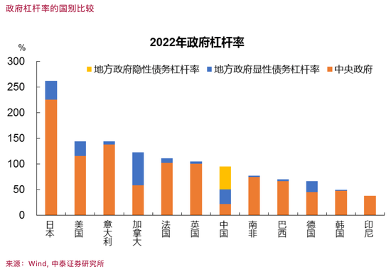 从上图可知,中国政府杠杆率水平在100%左右,明显低于美国的145%、日本的260%,也低于意大利、加拿大、法国和英国。但中国地方债(含隐形地方债)占GDP比例高达74%,应该是全球最高的。美国只有28.8%、日本为36.6%、德国为20.9%、法国为9.4%。比较主要经济体中央政府的杠杆率水平,中国几乎是最低的;而地方政府杠杆率,中国是最高的。