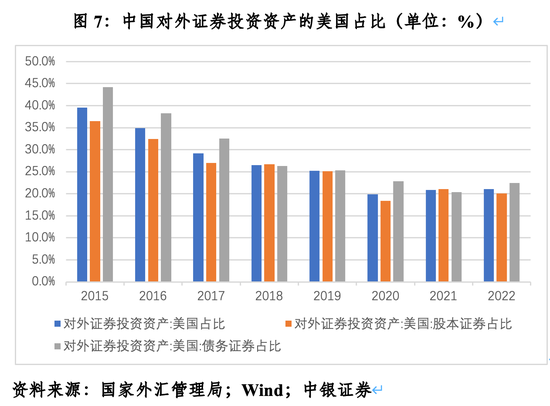 中方统计也印证了前述判断。根据国家外汇管理局的对外证券投资资产(分国别地区,不含官方外汇储备投资)统计,截至2022年底,中国对美证券投资资产余额2177亿美元,较2017年底增长了49.9%,美国稳居中国对外证券投资资产分布的第二大目的地。其中,对美股本证券投资资产余额1183亿美元,增长44.3%;对美债务证券投资资产余额994亿美元,增长57.1%。