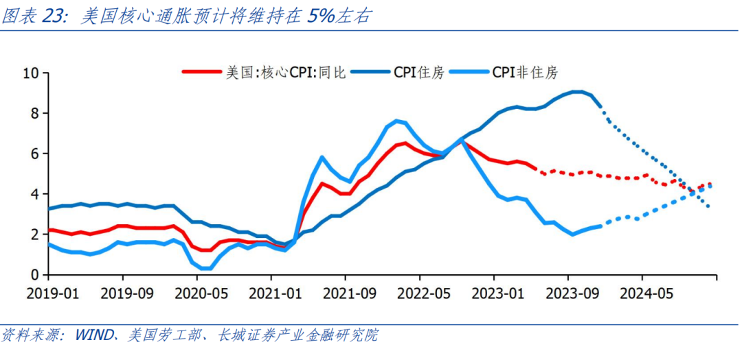因此,结合考虑美国房价和人均可支配收入,2023年下半年核心通胀或将维持在5%附近。