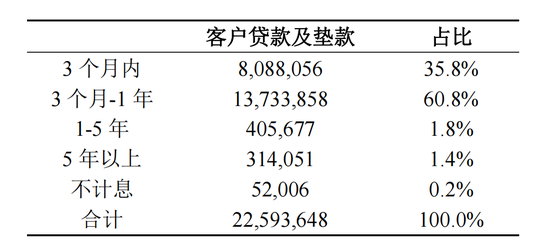先看2022年末,工商银行的贷款的到期结构,见下表(单位:百万元):