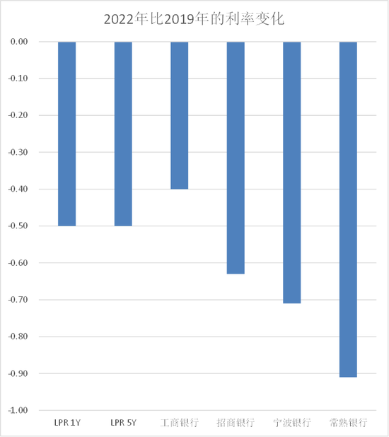 我们以工商银行、招商银行、宁波银行、常熟银行财报披露的贷款平均利率(上图中分别是上半年的平均利率和全年的平均利率)为例,可以发现:工商银行、招商银行这些大型银行,其贷款利率的下降滞后于LPR变化,但幅度相近,因此LPR下降是带动他们利率下降的主因(加点已没什么可降的了)。而宁波银行、常熟银行的贷款利率则下降幅度很大,LPR降幅可能只能解释其一半多,另一小半就是收回重贷时加点的下降,即来自贷款竞争加剧的影响。