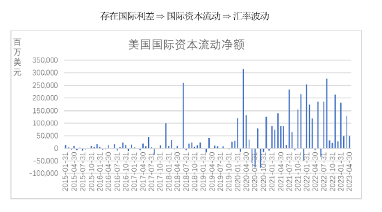 资本项目是国际收支平衡表中的重要组成部分,资本项目由于具有跨周期投资的特点,使得资本项目掺杂着一定的投机性。当一国利率相对升高时,将吸引国际资本流入,引起本国货币升值,例如2020年3月美联储重启量化宽松计划时,其利率降至零利率区间,导致美国国际资本流动净额明显降低,甚至出现了负值,美元外逃,美元兑人民币的平均汇率则从2020年3月的7.01一直降至2022年3月的6.35,即人民币相对美元持续升值。又例如2022年3月美联储为应对高企不下的通货膨胀开始加息,美国国际资本的流动规模显著提高,国际市场的投机性增加。也正是意识到利率与国际资本流动对汇率的影响,在政策实践中中央银行经常通过在货币市场上调整利率来调节汇率,较为典型的是2022年美联储开始激进加息后,全球已有包含欧央行、英国等至少38个国家追随进入了加息周期,以期减小其本币币值受美联储加息的影响。