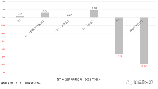 随着人口陆续达峰,中国也呈现出日本病的迹象。从物价水平看(图7),核心CPI自2022年4月份以来就低于1%。按照标准的定义,这就是通货紧缩。与此同时,相对价格效应也开始呈现。PPI自去年10月就陷入负增长,尤其是PPI中的生产资料价格下滑程度最大。除了物价水平,在资本积累方面,中国似乎也出现了资本过剩的现象。但是,这种资本过剩又与日本有所不同,因为中国的人均资本存量依然很低。在人均资本存量低得多的情况下,似乎就已经出现了资本过剩的迹象,这就是资本积累的悖论。