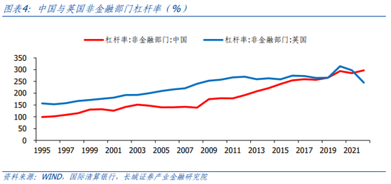 《21世纪资本论》里也提到了英国的公共债务问题,在19世纪10年代时公共债务占国民收入比例接近200%,之后用了整整一个世纪的财政盈余,才在20世纪头10年把公共债务压缩到国民收入30%之内。这完全依靠英国的国内生产总值和国民收入的增长(1815-1914年的增长率接近每年2.5%),财政始终在这期间保持相当大的盈余。2020年英国的非金融部门杠杆率又达到了历史性的高点,突破了300%,比我国水平还高。金融系统也出现了危机的迹象,2022年发生的养老金国债事件就是例证,英镑兑美元降至了1978年以来的低点,1.0335。但到2022年底,英国的非金融部门杠杆率下降至了245.1%,这又是如何做到的呢?