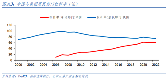 和谐化债的难度太大,可能最终还是会走债务货币化的道路。难道真的没有其他方法了吗?如果观察图一,我们可以发现在2020年疫情发生的那一年,中美两国的非金融部门杠杆率上升到同一水平,都接近300%(我们大致以非金融部门杠杆率来测算宏观杠杆率,下同)随后美国非金融部门杠杆率持续下降,中国非金融部门杠杆率再创新高。我们在《中美两国经济呈现分化趋势》中提到,中美两国很多经济指标都呈现出分化的态势,去杠杆过程并未阻碍美国经济的复苏。国际清算银行的数据显示,美国居民部门杠杆率高于中国,但居民并未增加而在降低储蓄。如果再观察德国,其非金融部门杠杆率在过去二十年里几乎呈现出下降的过程,也并未影响其经济增长速度以及其在欧元区的核心地位。在2013年以前我国的非金融部门杠杆率还低于德国,之后就持续高于。2022年德国非金融部门杠杆率回到了200%以下,中国非金融部门杠杆率接近300%。