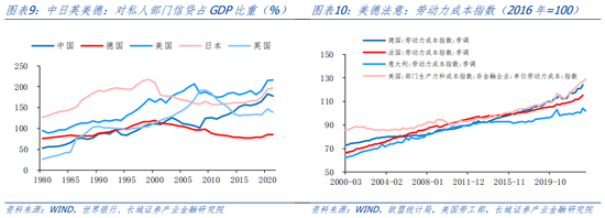 同样的现象也发生在德国,前总理施罗德上任之后出台了“2010议程”,2004年正式全面推行。通过在财政政策、劳动力市场等方面的改革,德国降低了劳动成本、提高了劳动效率,提升出口市场份额,为“债务刹车”提供了坚实的基础。同时德国的房地产市场制度完善,限制了房价的过快上涨,债务对经济的推动作用较小,抵制住了凯恩斯主义的诱惑。