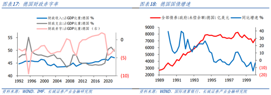 在上世纪90年代,德国财政政策先扩张,后紧缩,主要是服务于特定的历史阶段目标,在扩张过程中,德国政府也显示出了较为稳健的方式,扩张中央政府债务,而控制地方政府债务。在紧缩过程中,即使1998年债务规模有所回升,也迅速重新降低。这两个阶段均体现出德国仍然延续着“保守谨慎”的财政基调。
