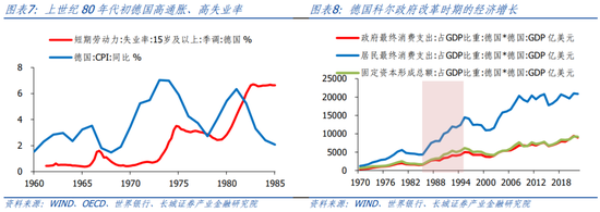 科尔政府放弃需求侧刺激,实行供给侧改革的政策帮助德国摆脱了70年代的经济困境,实现了80年代的稳定增长。成功的改革和经济转型垫定了德国作为工业强国的长期竞争力基础。同时,德国在低政府债务增长的情况下也能维持经济繁荣,进一步增强了德国“保守谨慎”的财政基调。