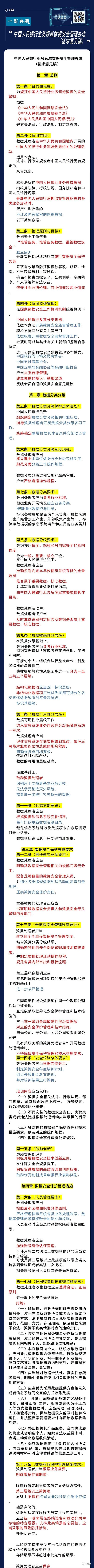 近日,为落实《中华人民共和国数据安全法》有关要求,加强中国人民银行业务领域数据安全管理,中国人民银行起草了《中国人民银行业务领域数据安全管理办法(征求意见稿)》,现面向社会公开征求意见。以下是次征求意见稿的主要内容: