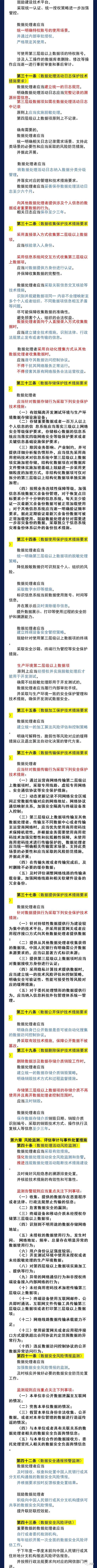 六、数据安全保护管理措施部分是全篇文字最多的部分,主要包括: