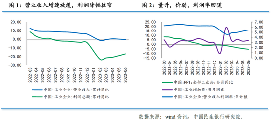 从量-价-利润率三要素来看,6月工业增加值逆势企稳,工业原材料价格下降助推利润率回升,这两项因素抵消了工业品出厂价格的加速下滑,从而带动工业企业利润降幅收窄。