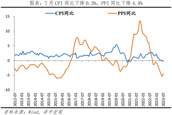 7月CPI同比-0.3%,前值0%;7月PPI同比-4.4%,前值-5.4%。