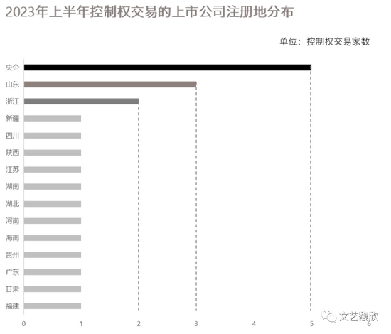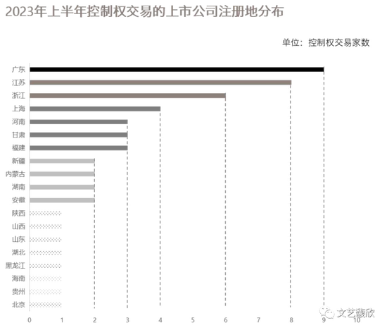 就上市公司注册地看,交易性控制权变动前三大省市(广东、江苏、浙江)的次位仍与去年保持相同,长三角和珠三角等经济发达地区控制权交易持续活跃。